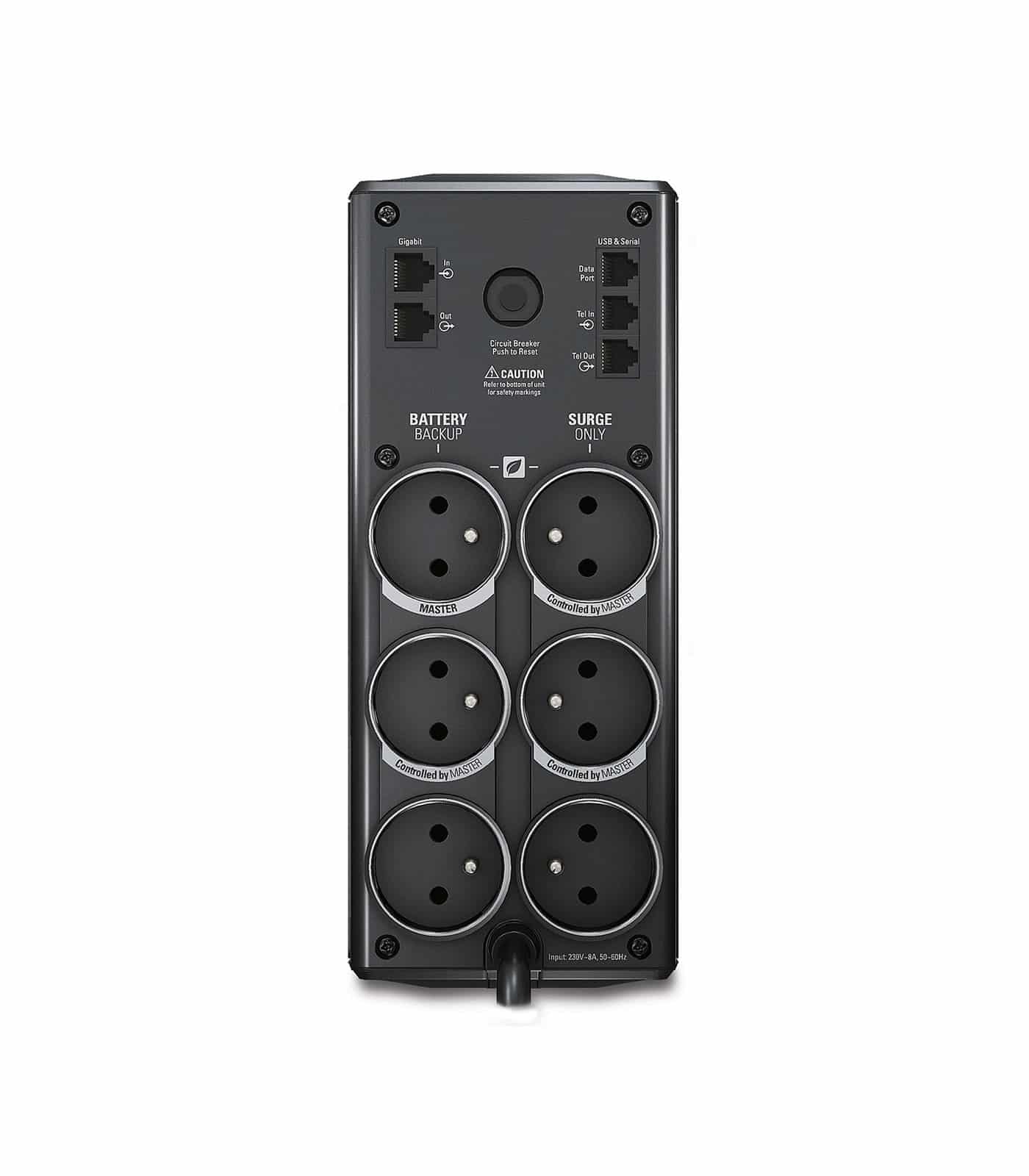 L’APC Back-UPS Pro 900 est un onduleur offrant protection et alimentation de secours hautes performances pour les ordinateurs à usage professionnel. L’onduleur Back-UPS Pro 900VA se distingue tout particulièrement par la régulation automatique de la tension (fonction AVR). Cette fonction AVR corrige instantanément les fluctuations à la baisse et à la hausse de la tension, ce qui vous permet de travailler indéfiniment pendant les baisses de tension et les surtensions, et de conserver tout le potentiel de la batterie pour les moments où vous en avez le plus besoin. Le Back-UPS Pro se caractérise également par ses fonctions d’économie d’énergie notamment en étant capable d’éteindre les périphériques en veille sur les prises contrôlées.