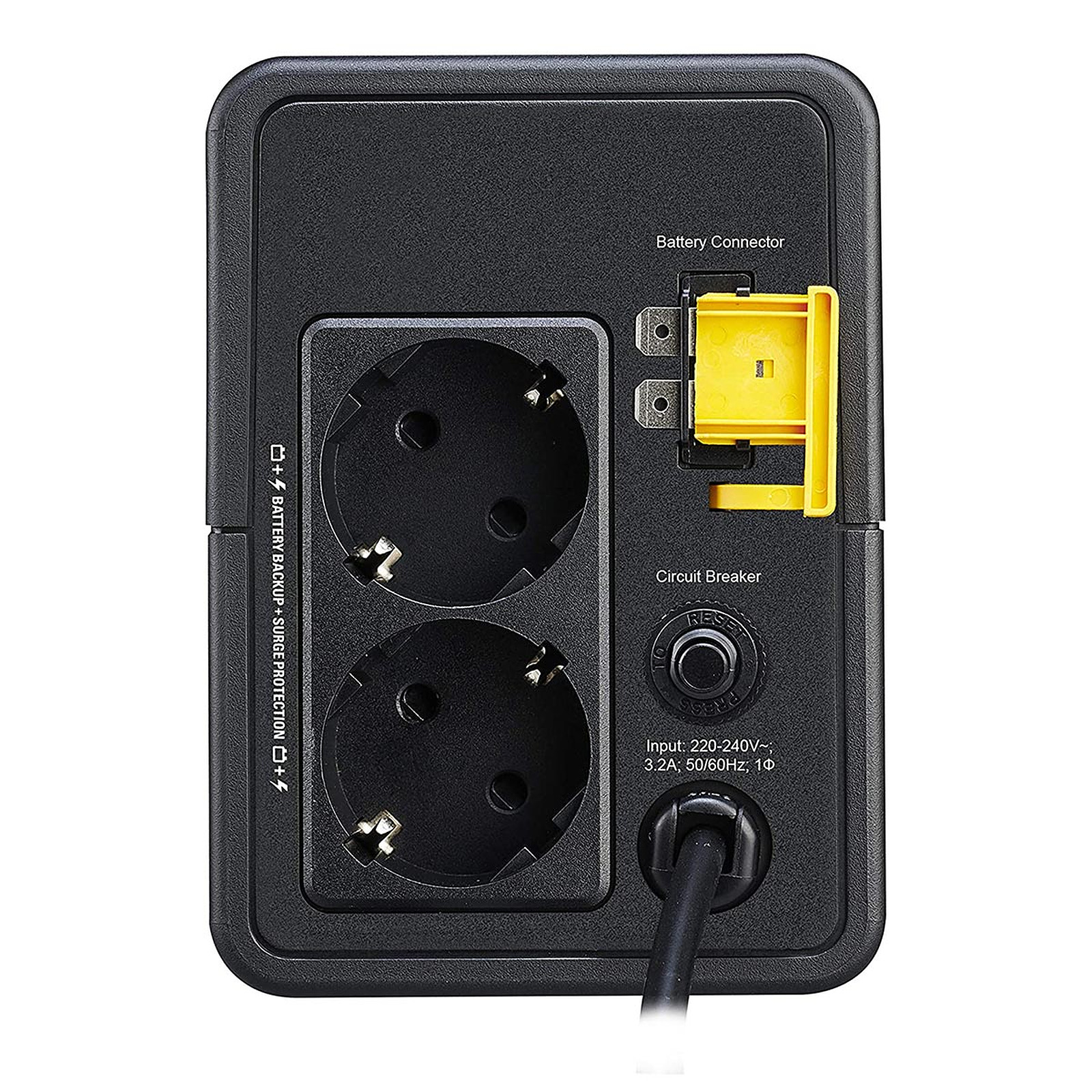 - Connexions de sortie : (2) Schuko (Batteries de secours)