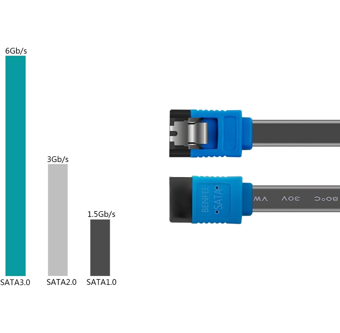 Ce câble SATA gainé avec connecteur droit à 180° est un modèle Premium. Compatible avec tous les disques durs, SSD et lecteurs optiques SATA du marché, il offre des performances optimale et supporte la dernière norme SATA 3.0 (6 Gb/s). Pour vous assurer une durabilité et une fiabilité à toute épreuve de qualité premium. Ne manquant pas de style, il apporte la touche finale à l’élaboration de votre PC.